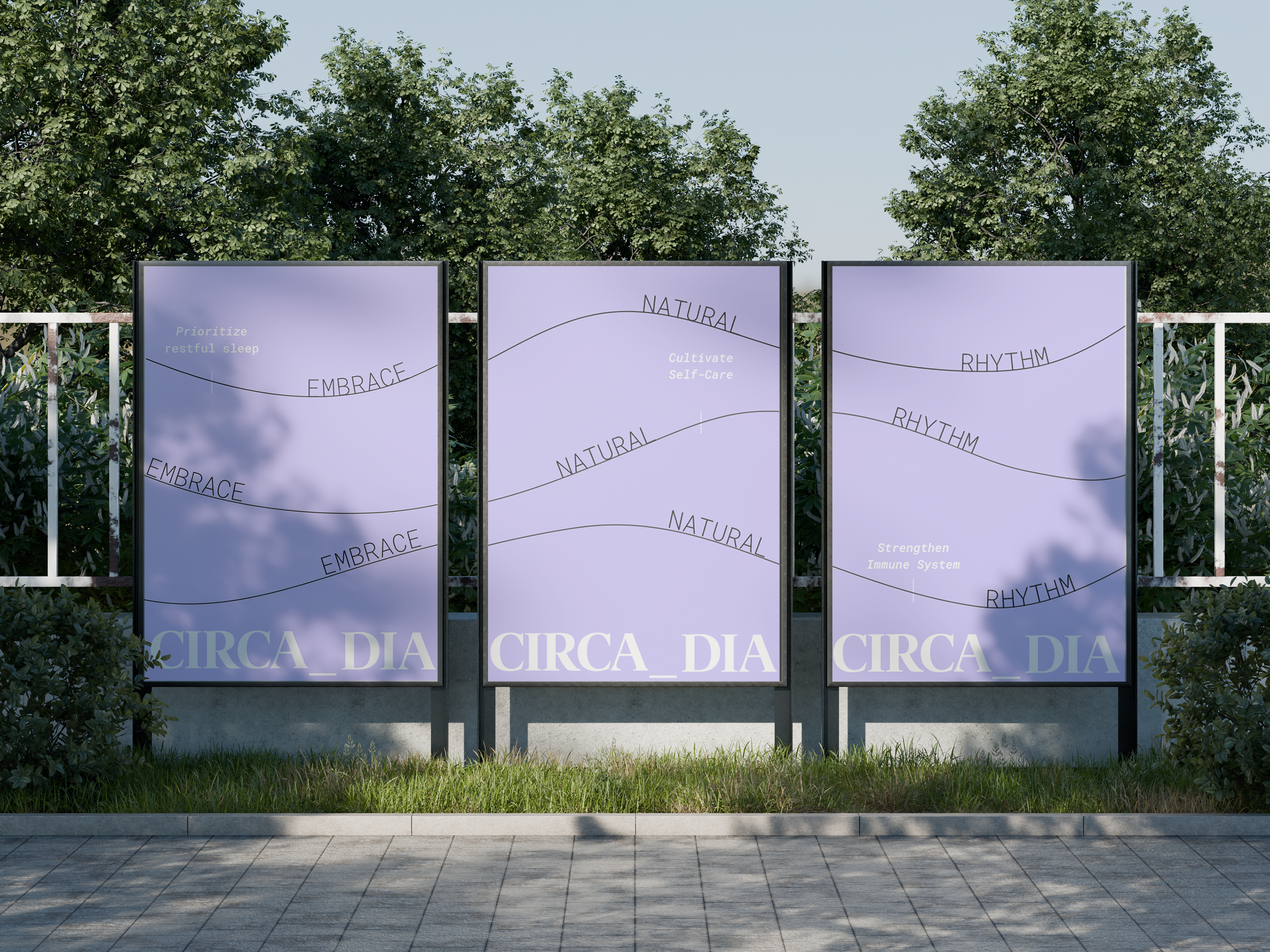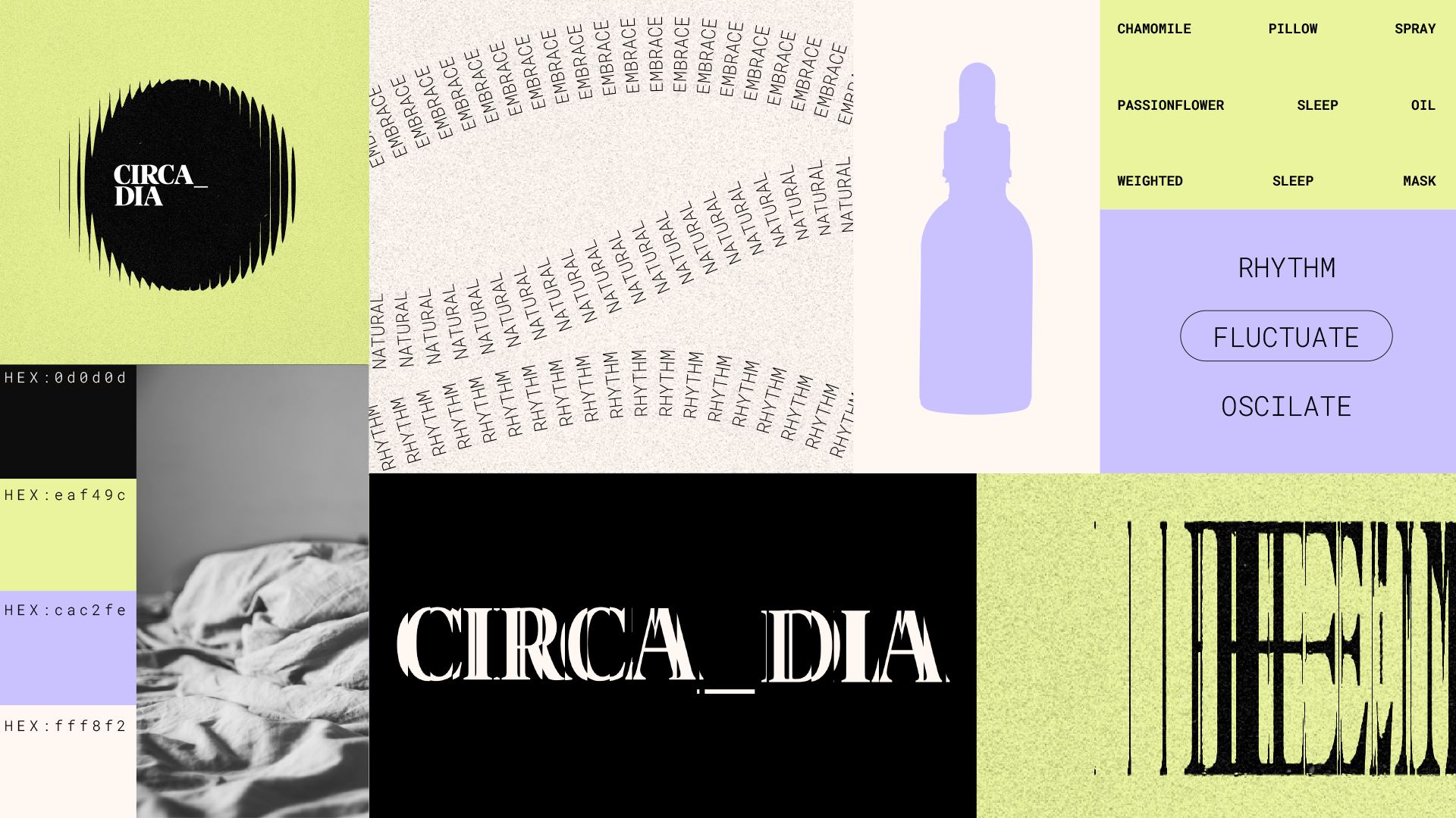 This project explores a visual identity for a sleep wellness brand rooted in the science of circadian rhythms. Inspired by the natural oscillation of our internal clocks, the identity uses flowing, wave-like lines to evoke rest, balance, and continuity. Type and form are softly refracted, creating gentle rhythms that feel organic and closely connected to nature. The system extends across social media, packaging, and web, unising by a calming pastel palette. Warm, subtly noisy textures that enhance the sense of comfort and rest.
